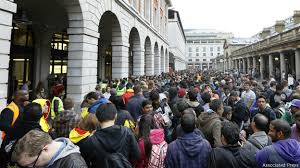 rebaño adocenado y silencioso haciendo cola en una tienda de Apple en Londres